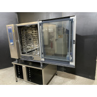 Hier handelt es sich um einen SCC 102 WE Kombidämpfer in Elektroausführung, des Premium Herstellers Rational, Baujahr 2018. Der Kombidämpfer ist ein Gerät aus der aktuellsten SCC- Baureihe mit 3-fach Verglasung und LED-Beleuchtung und bietet Platz für 10x2/1 GN oder 20x 1/1 GN Behälter. Somit eignet sich dieses Gerät perfekt für alle die mehr Produktionskapazität benötigen wie Metzger Caterer etc.. Durch den Quereinschub eignet sich das Gerät perfekt für z.B. großes Bratgut wie Spanferkel/Lamm/ Ganze Bratenstücke etc. Das Gerät wurde in unserer hauseigenen Werkstatt einer Inspektion unterzogen und der Kombidämpfer ist voll funktionsfähig. Dieser Kombidämpfer wird mit dem abgebildeten Untergestell angeboten.